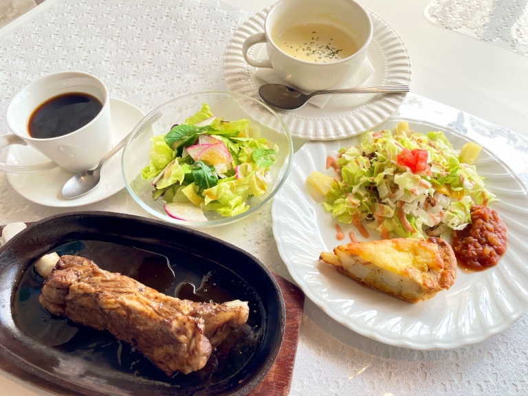 グリーンサラダ、本日のスープ、本日のキッシュ、ライスorタコライス 特製スペアリブ(甘辛しょうゆ/ ガーリックしょうゆ/塩粒マスタードレモン/ゆず胡椒)