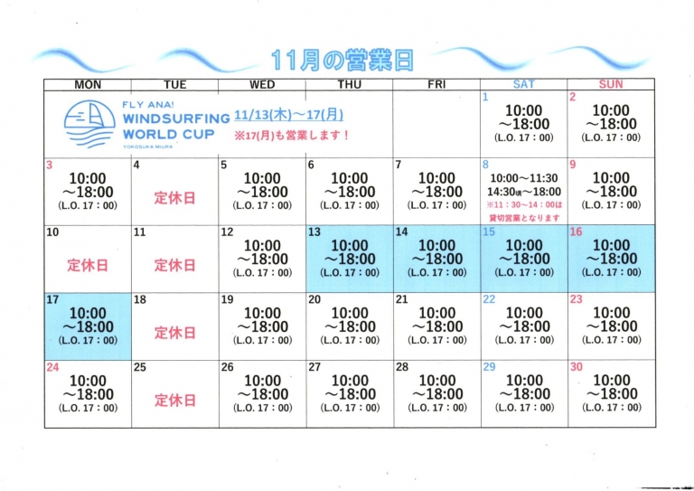 11月13日(木)~17日(月)、ウインドサーフィンワールドカップが開催されます☆