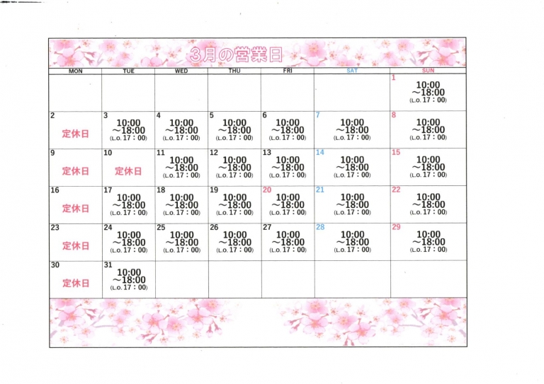 Informationsお知らせ カテゴリー一覧 プレスリリース営業日のお知らせ 月別アーカイブ一覧 2026/02(1) 2026/01(2) 2025/08(1) 2025/03(1) 2025/02(1) 2024/11(1) 2023/07(1) 2022/12(1) 2022/07(1) 2022/06(1) 最近の投稿 2026年3月 営業日のお知らせ 2026年2月 営業日のお知らせ 2026.1.3~季節限定!朝摘み苺のデザートが始まります☆ 朗報です。 「ヒルナンデス!」当店が紹介されました☆ 年別アーカイブ一覧 2026年 2025年 2024年 2023年 2022年 2026年3月 営業日のお知らせ 2026/02/27 2026年3月の営業日カレンダーです。 ラストオーダーは閉店時間の1時間前です。 皆様のご来店をお待ちしております☆ 営業日のお知らせ 関連記事 2026.1.3~季節限定!朝摘み苺のデザートが始まります☆ 「ヒルナンデス!」当店が紹介されました☆ 記事掲載のお知らせ『たびらい』 ≪ 2026年2月 営業日のお知らせ 一覧に戻る Welcome to Dessert & Cafe BlueMoon Yokosuka オンラインでお席をご予約できます