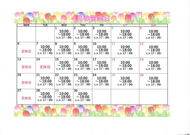 2026年4月の営業日カレンダーです。